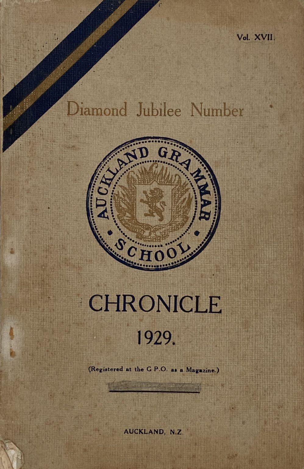 AUCKLAND GRAMMAR SCHOOL: Chronicle, Diamond Jubliee Number 1929, Volume XVII