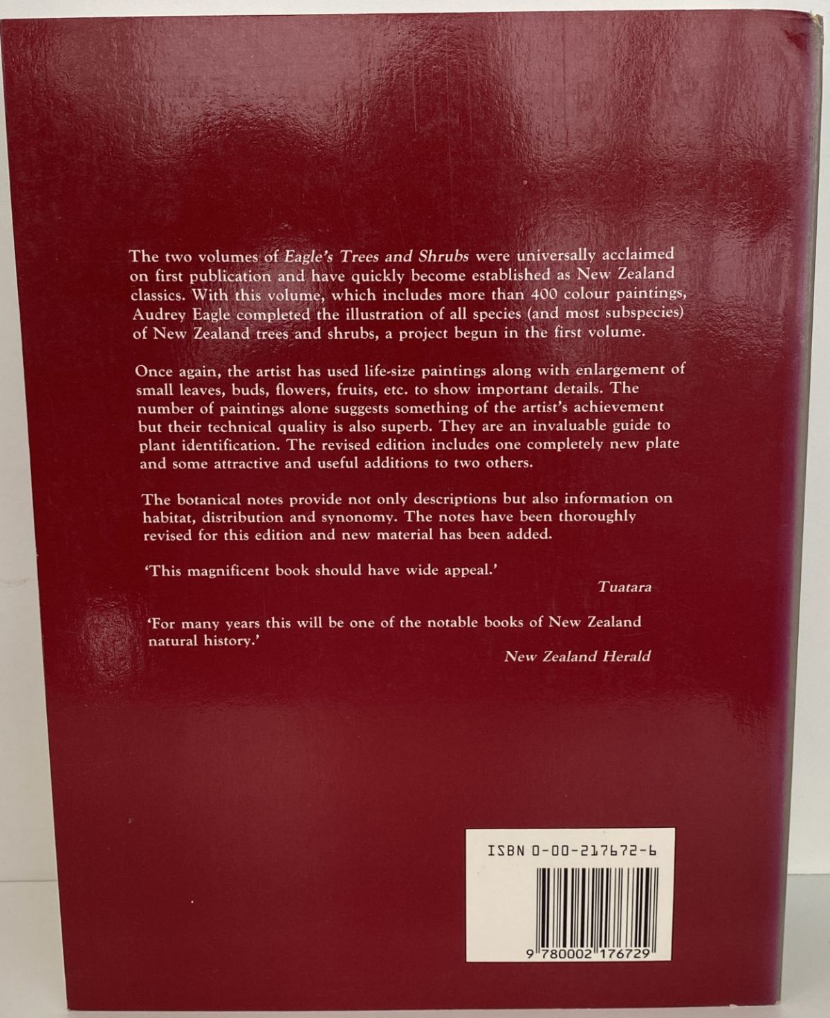 The two volumes of Eagle's Trees and Shrubs were universally acclaimed and have become established as New Zealand classics.