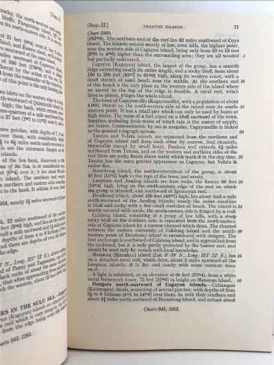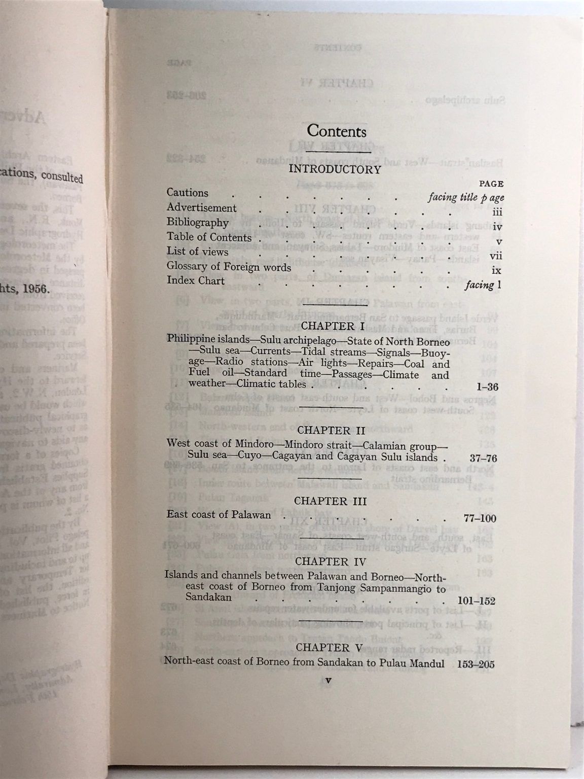 Contains information and descriptions of the ports along the coast of the Philippine islands (except the western coasts of Luzon and Palawan), the Sulu sea, Sulu archipelago, and the North-east coast of Borneo.