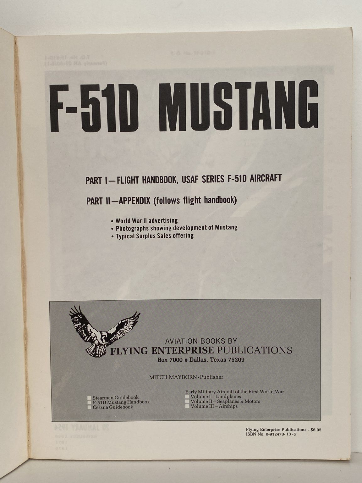A manual based on the official Flight Handbook for the P-51D aircraft, with some editions including additional historical content.