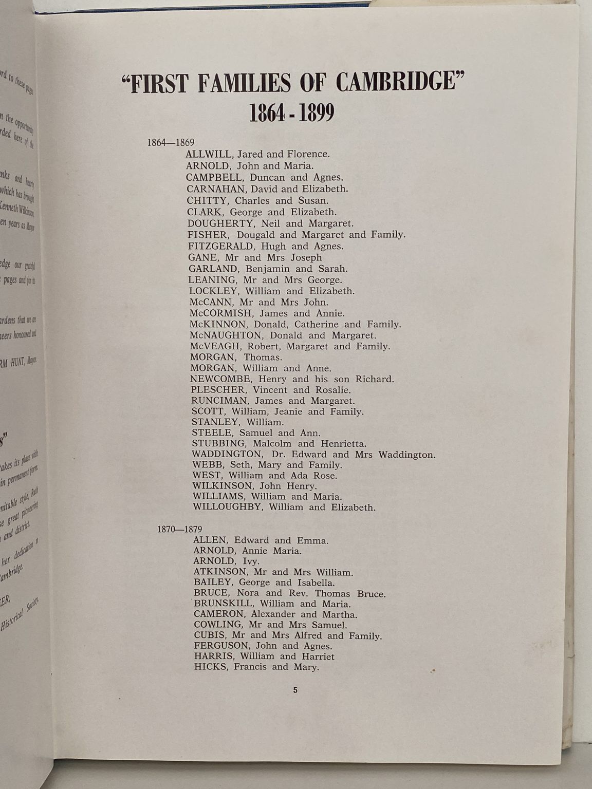 FIRST FAMILIES OF CAMBRIDGE 1864-1899