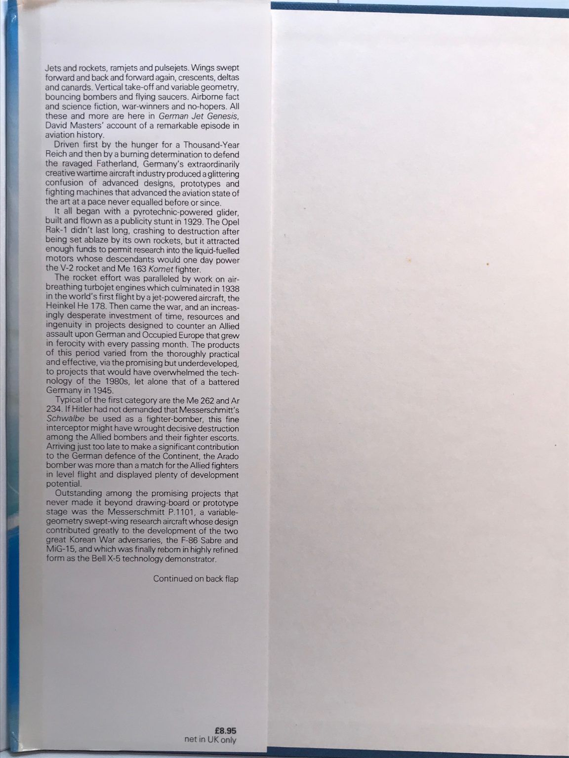 The author traces how German engineers working in firms like Heinkel, Messerschmitt, and Junkers - pushed aviation into a new technological era, creating the world’s first operational jet fighters and rocket powered aircraft.