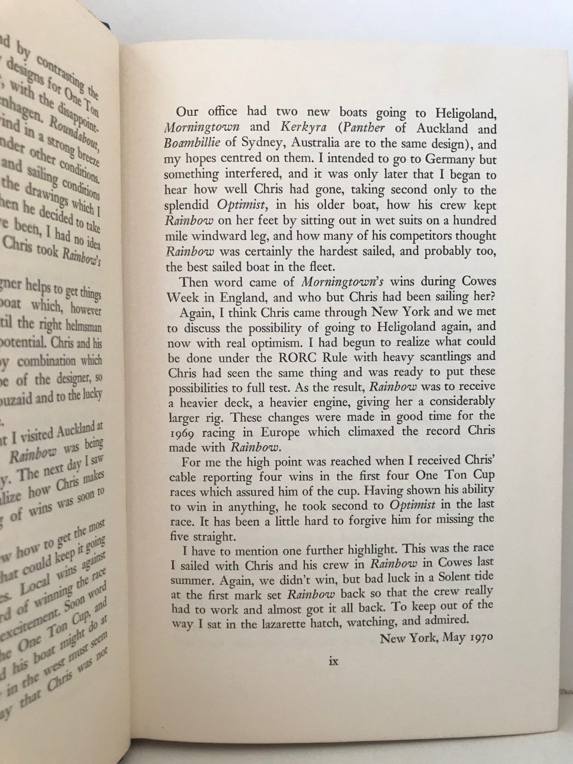 The early life and sailing exploits of the young New Zealander, and a race by race account of the 1969 series that ended in New Zealand victory.