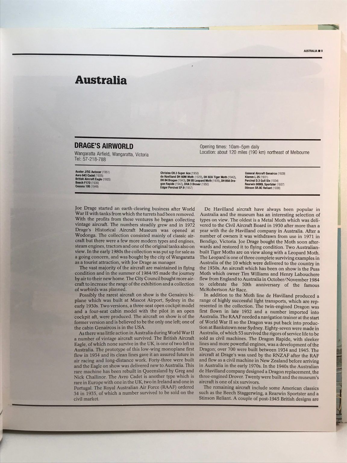 Spanning four continents and including major collections in the United States of America, Europe and Australasia, every entry is packed with interesting facts about the history of the collection and the aircraft it displays.