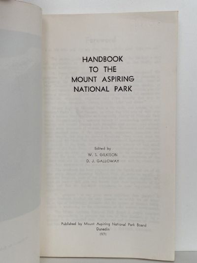 Vintage handbook for Mount Aspiring National Park in the Southern Alps of New Zealand.
