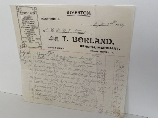 Title: OLD INVOICE: T. Borland, Riverton - General Merchant 1934