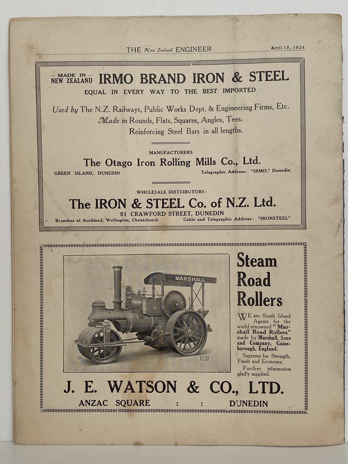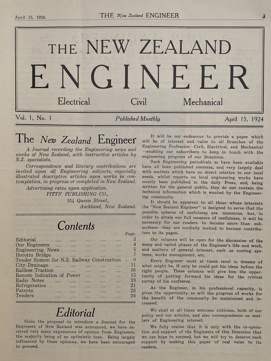 OLD MAGAZINE: The New Zealand Engineer Vol. 1, No. 1 - 15 April 1924
