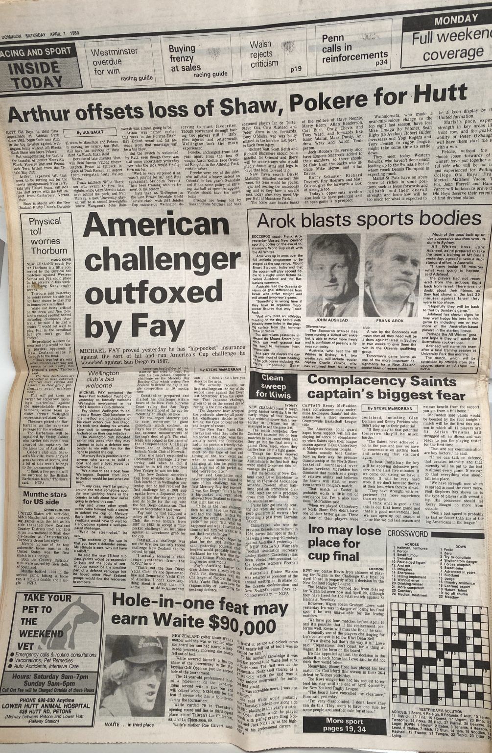 OLD NEWSPAPER: The Dominion, Wellington - Saturday, 1 April 1989