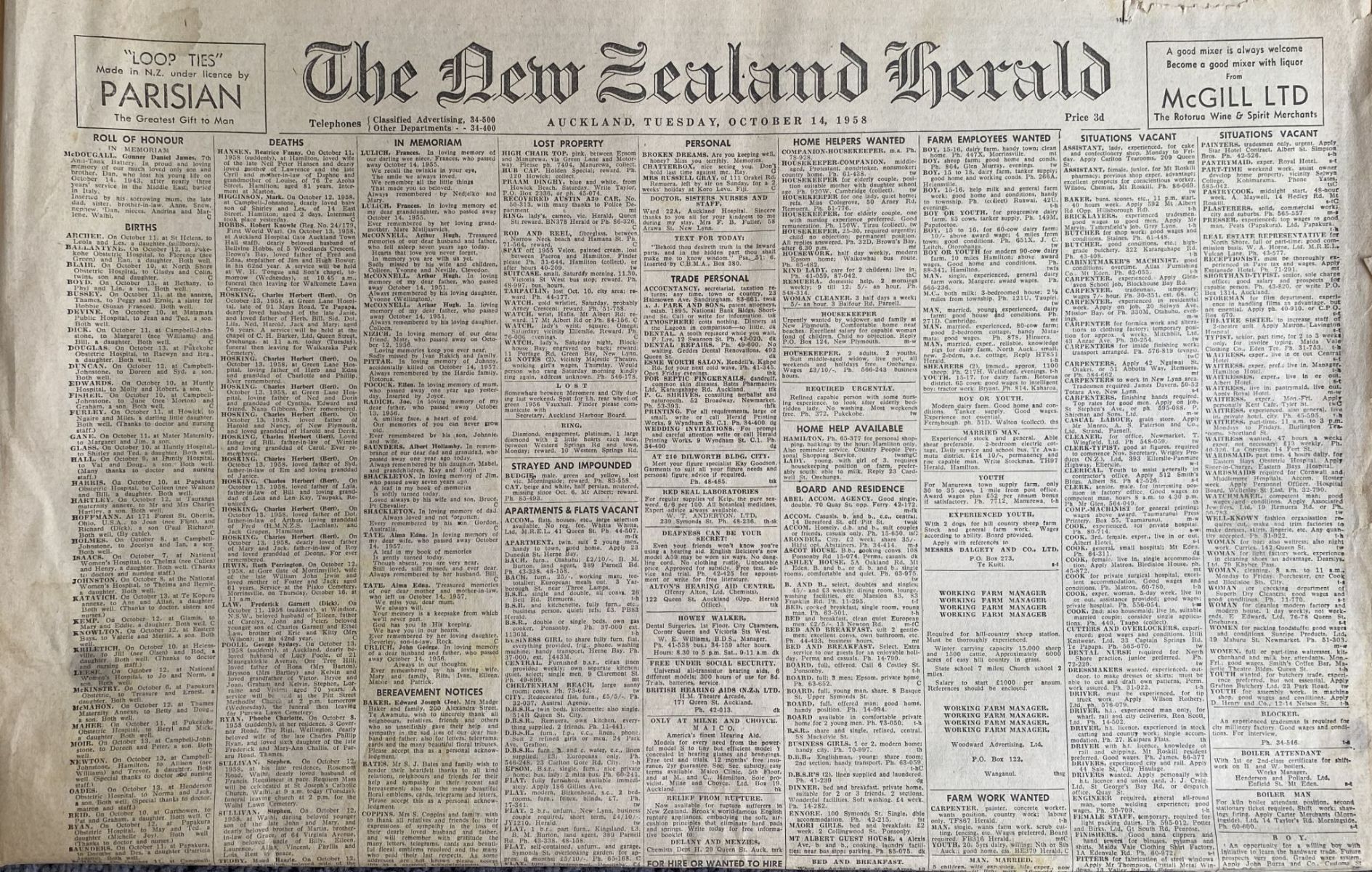 OLD NEWSPAPER: The New Zealand Herald - Friday, 14 October 1958