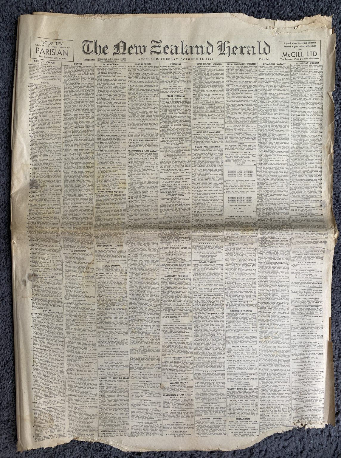 Title: OLD NEWSPAPER: The New Zealand Herald - Friday, 14 October 1958