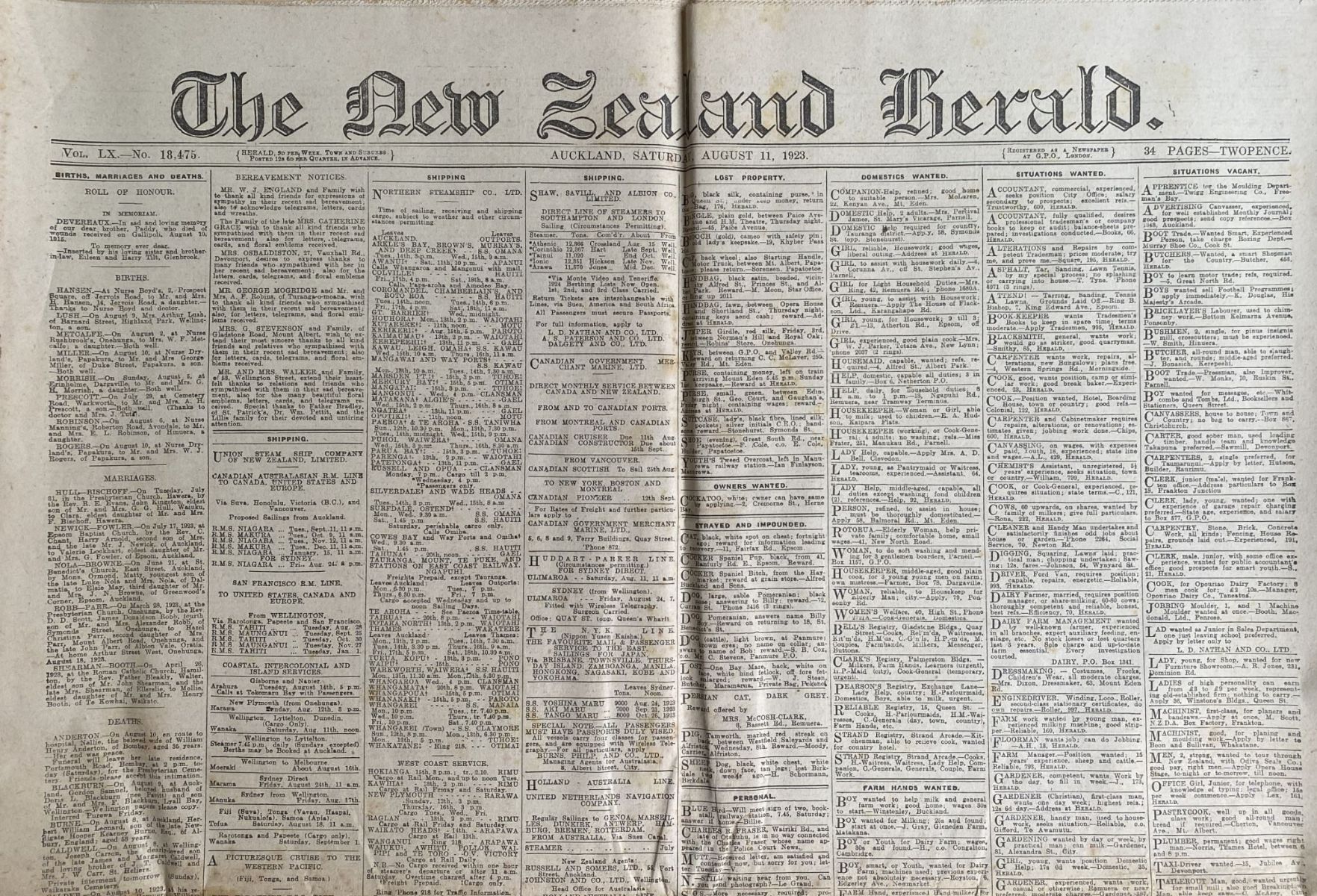 OLD NEWSPAPER: The New Zealand Herald - Saturday, 11 August 1923