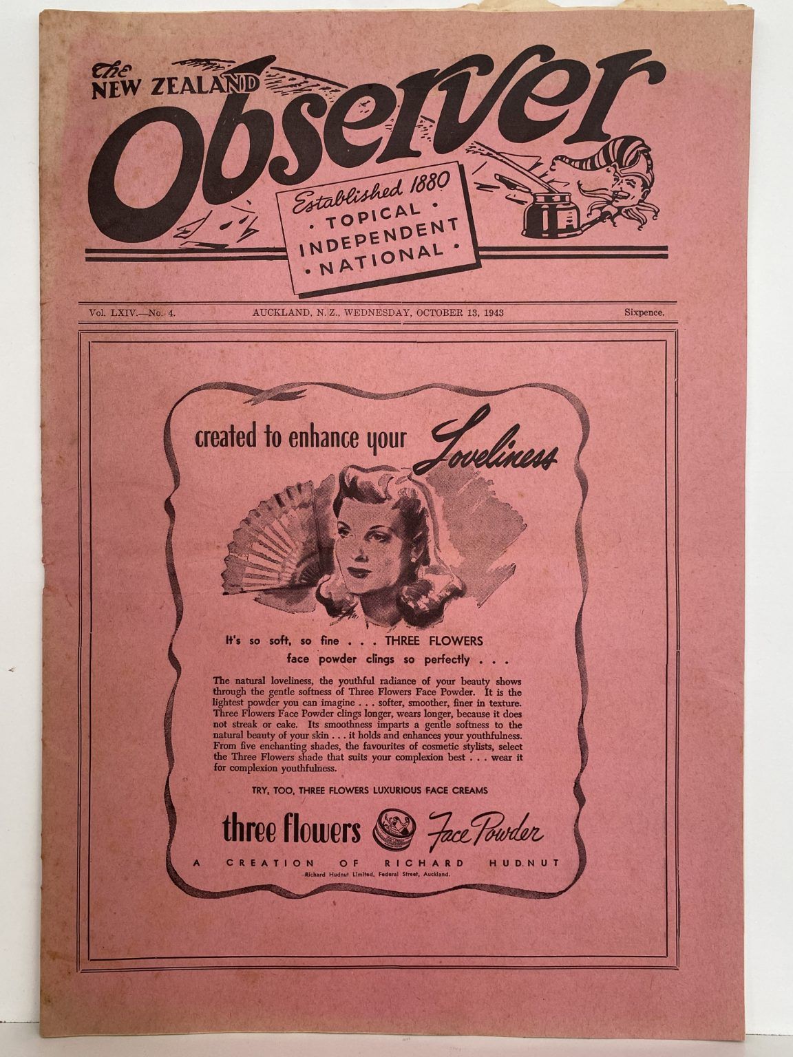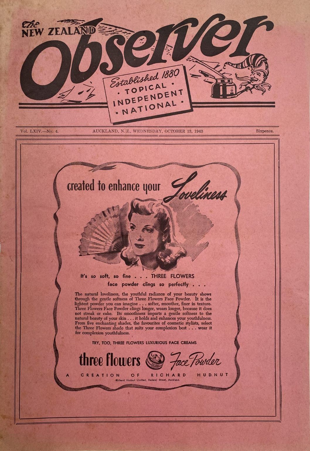 OLD NEWSPAPER: The New Zealand Observer - Vol. LXIV, No. 4 - 13 October 1943