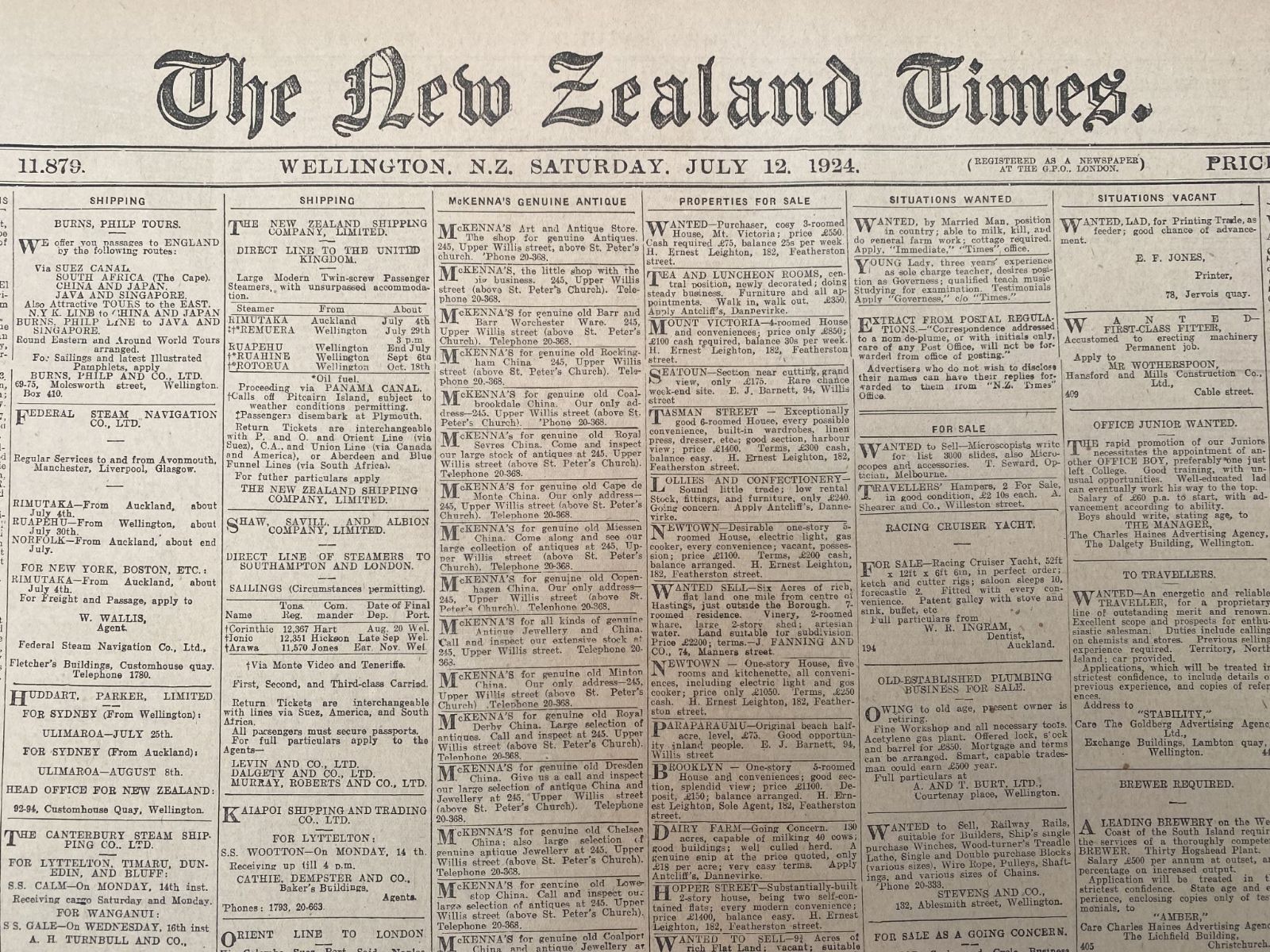 OLD NEWSPAPER: The New Zealand Times, Saturday 12 July 1924
