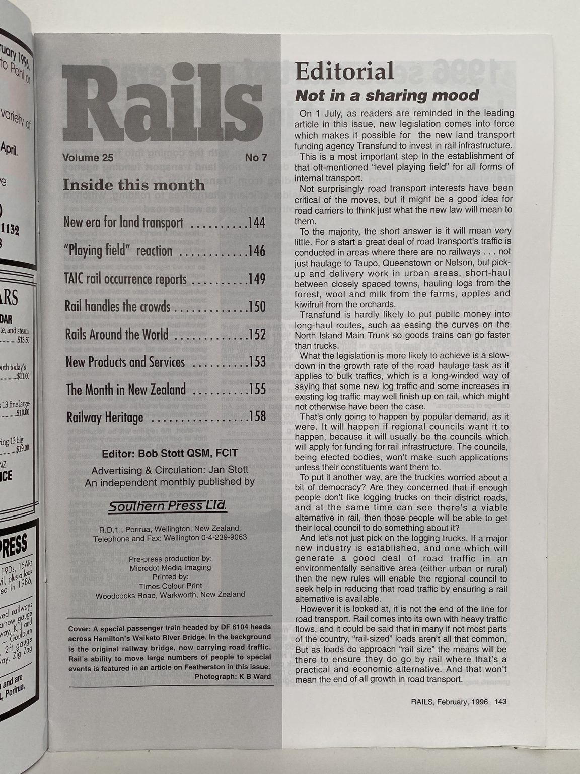 New Zealand's Rail Transport Journal, February 1996 issue.