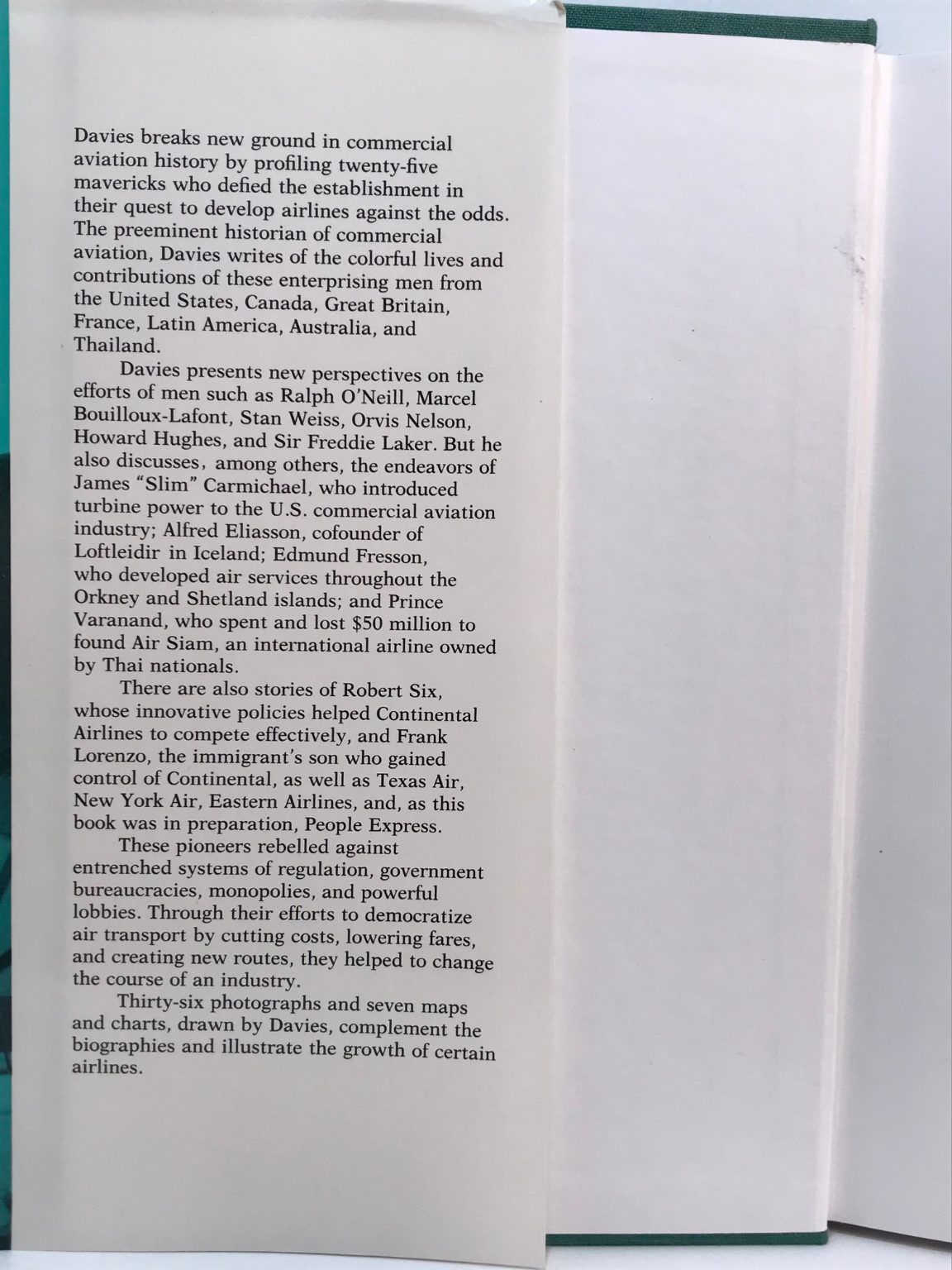 Davies presents new perspectives on the efforts of men such as Ralph O'Neill, Marcel Bouilloux-Lafont, Stan Weiss, Orvis Nelson, Howard Hughes and Sir Freddie Laker. He also discusses men such as Ralph O'Neill, Marcel Bouilloux-Lafont, Stan Weiss, Orvis Nelson, Howard Hughes & Sir Freddie Laker.