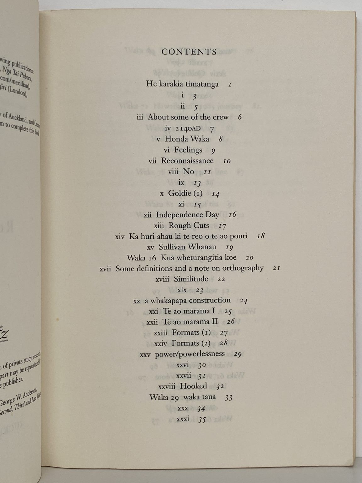This collection of 100 poems by a Maori writer shows a variety of subject and tone but is unified by recurring motifs and a persistent Maori perspective, refer images