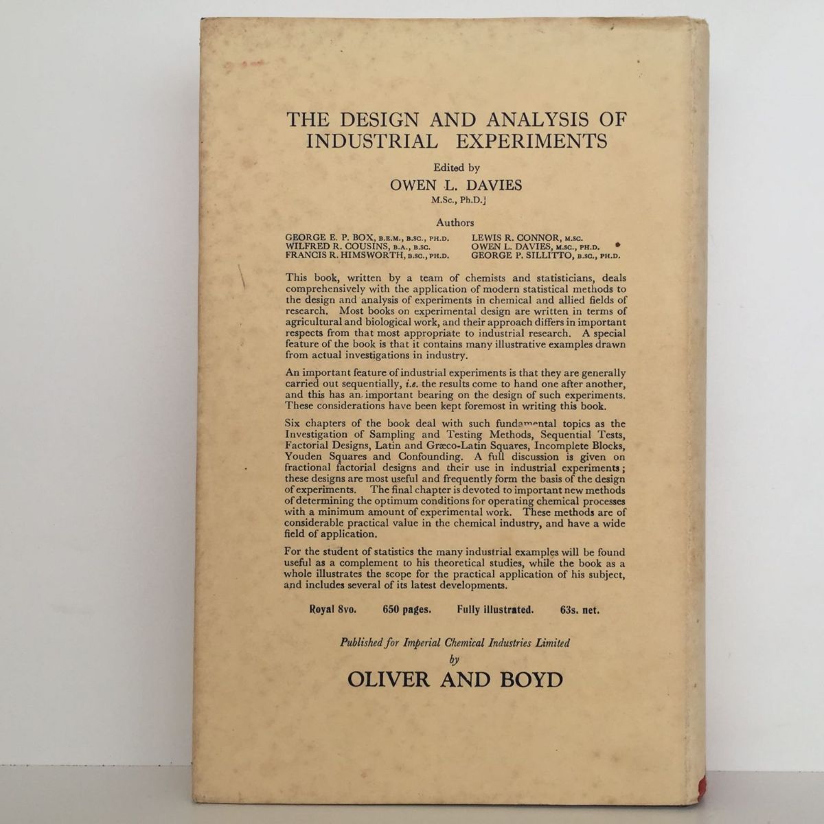 Previous Editions have established this as a standard handbook of statistical methods for scientific and industrial research workers. It has proved of value to students of statistics who have found the many industrial examples useful as a complement to their theoretical studies. Much of the book's is written by a team of chemists, statisticians, engineers and physicists who have had considerable experience in research and process work in the chemical industry.
