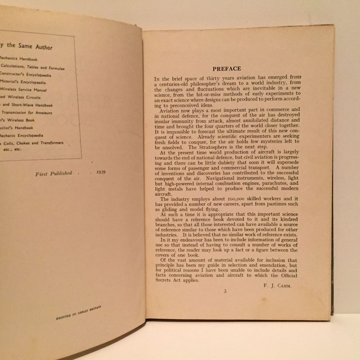 Vintage flying guide to the history and development of all types of aircraft and the principles of flight. Includes facts and figures, records, societies, clubs, gliding, airships and balloons.