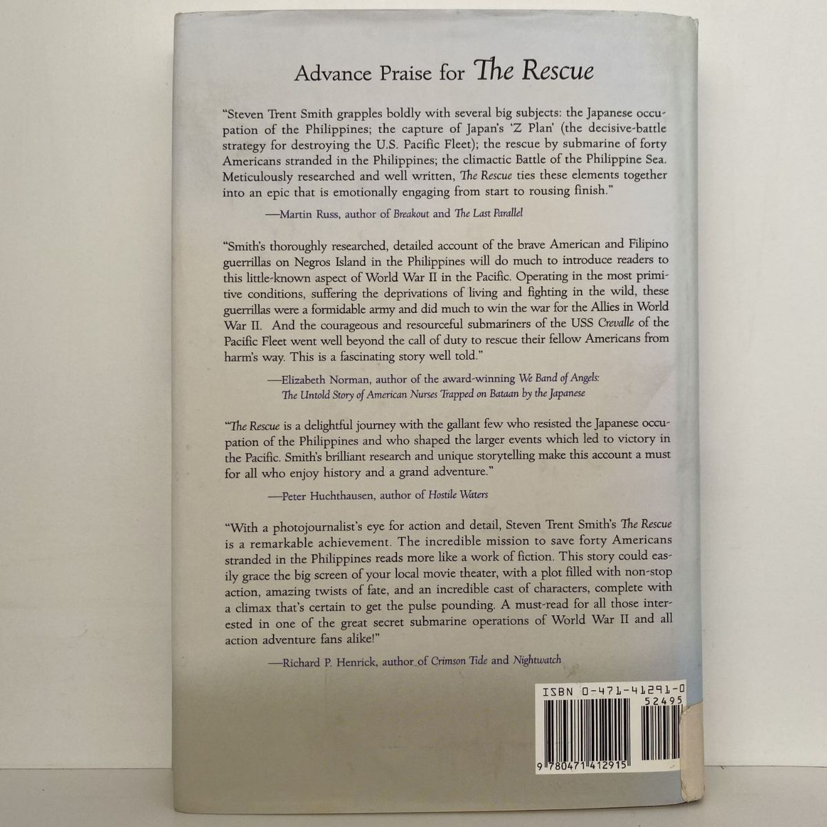 Steven Trent Smith grapples boldly with several big subjects: the Japanese occupation of the Philippines; the capture of Japan's 'Z Plan' (the decisive-battle strategy for destroying the U.S. Pacific Fleet); the rescue by submarine of forty Americans stranded in the Philippines; the climactic Battle of the Philippine Sea. Meticulously researched and well written, The Rescue ties these elements together into an epic that is emotionally engaging from start to rousing finish.