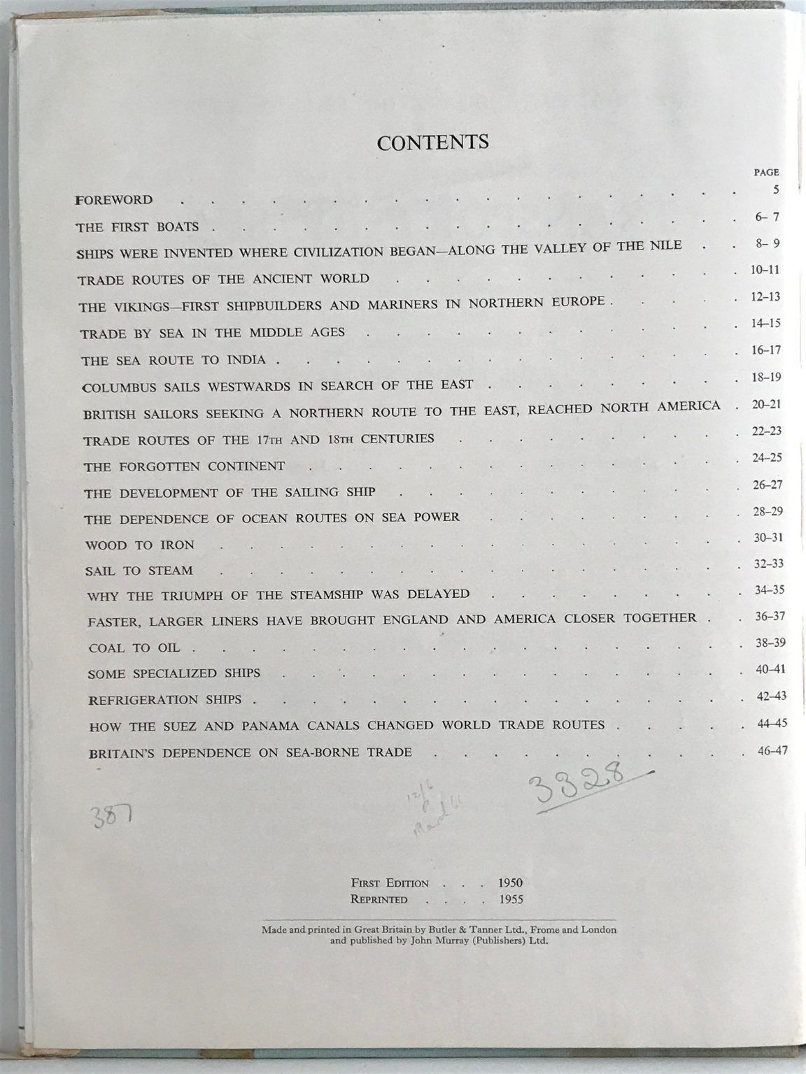 A graphic essay telling - mainly by means of pictures, charts and maps - the story of mankind's struggle to overcome the obstacles of the sea.