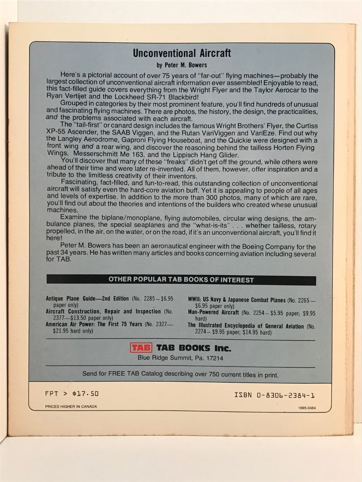 The book covers everything from canards, pushers, lifting bodies, and flying wings to oddball prototypes, homebuilt innovations, and one off research craft.