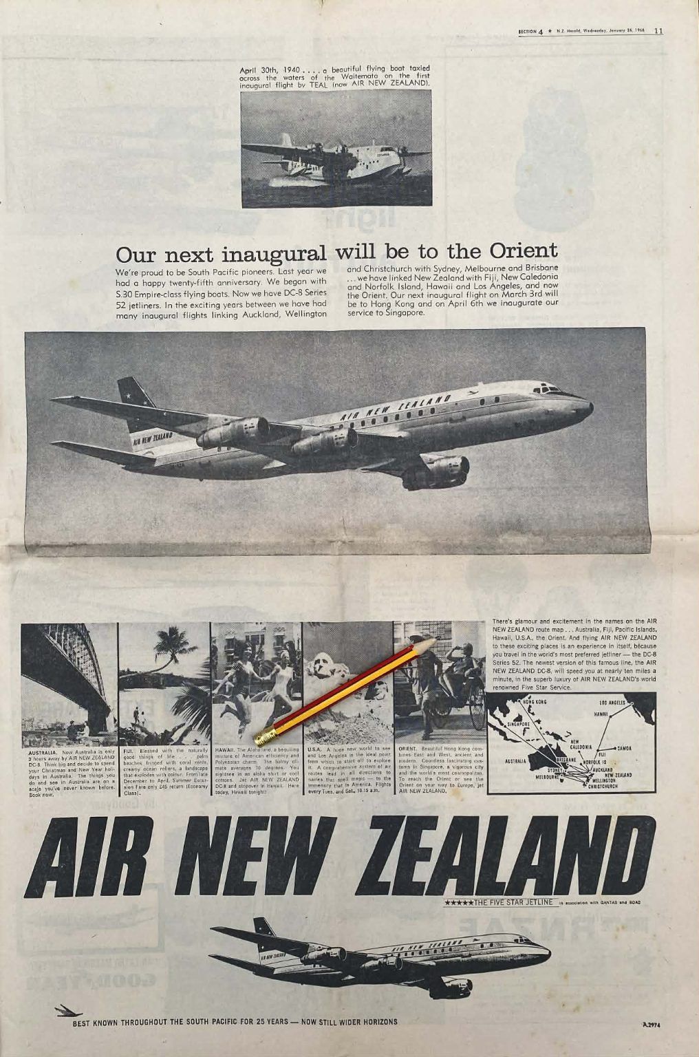 VINTAGE NEWSPAPER ADVERT: Air New Zealand 1966