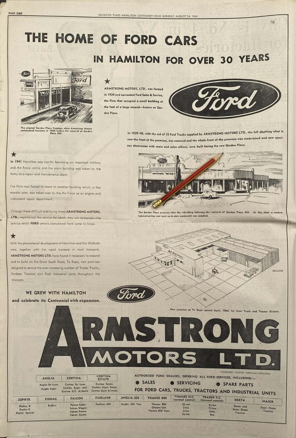 Armstrong Motors were local Ford dealers in Hamilton selling Anglia, Cortina, Zephyr, Zodiac, Falcon, Fairlane, Thames, Tractors and Trucks.