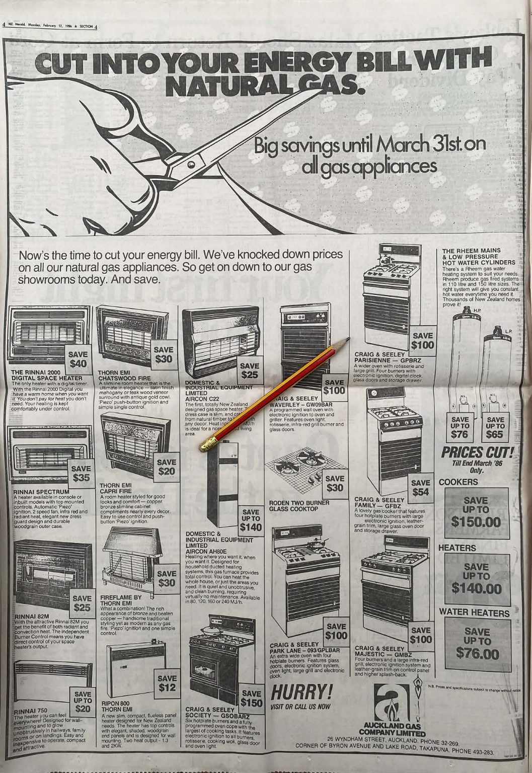 VINTAGE NEWSPAPER ADVERT: Auckland Gas Company 1986