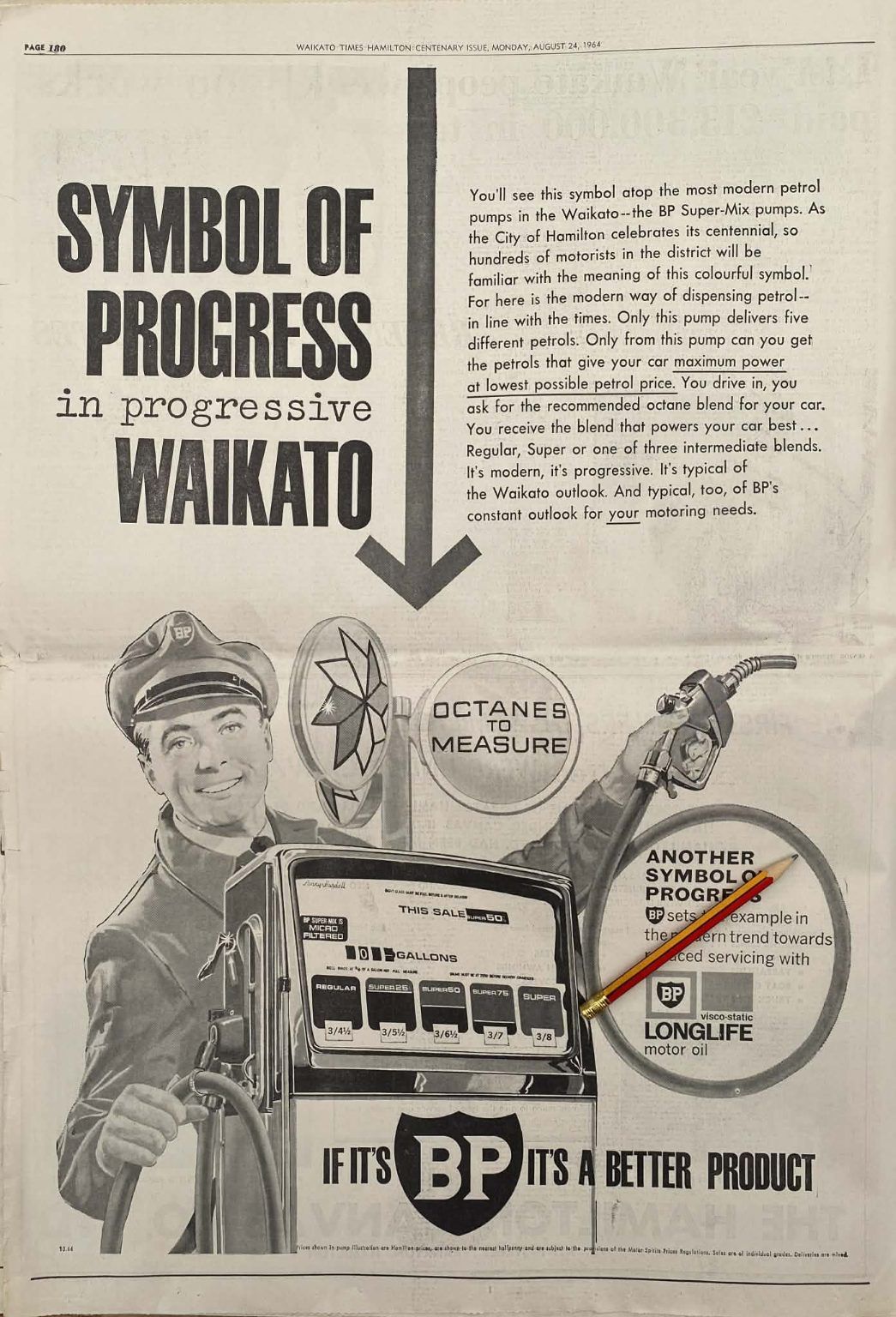 VINTAGE NEWSPAPER ADVERT: BP in Waikato 1964