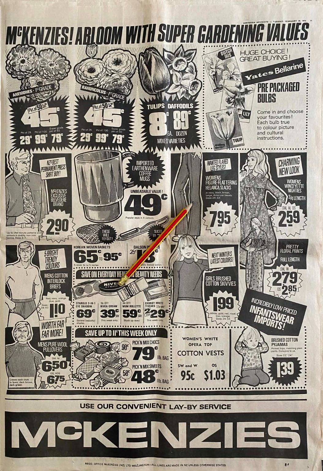 Own a unique piece of Kiwiana - an original full page advert for McKenzies NZ from a 1973 newspaper that would look fantastic framed.
