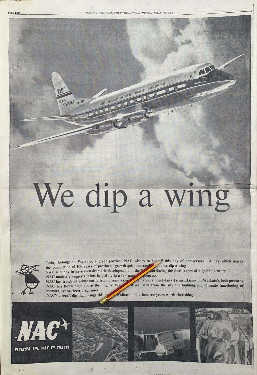Own a unique piece of Kiwiana - an original full page vintage advert for NAC National Airways Corporation from a 1964 newspaper that would look fantastic framed.