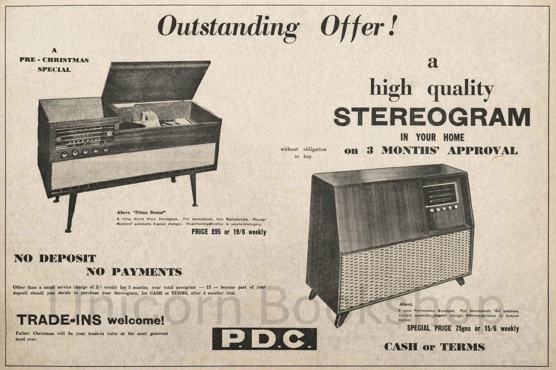 Title: VINTAGE NEWSPAPER ADVERT: PDC Department Store / Stereogram 1962