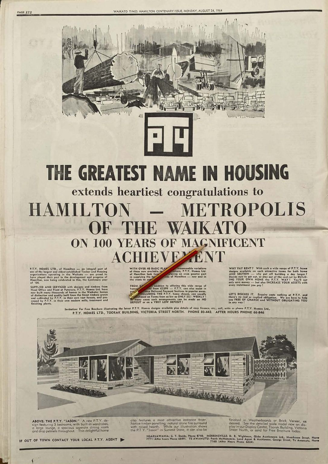 Title: VINTAGE NEWSPAPER ADVERT: PTY Greatest name in housing, Hamilton 1964