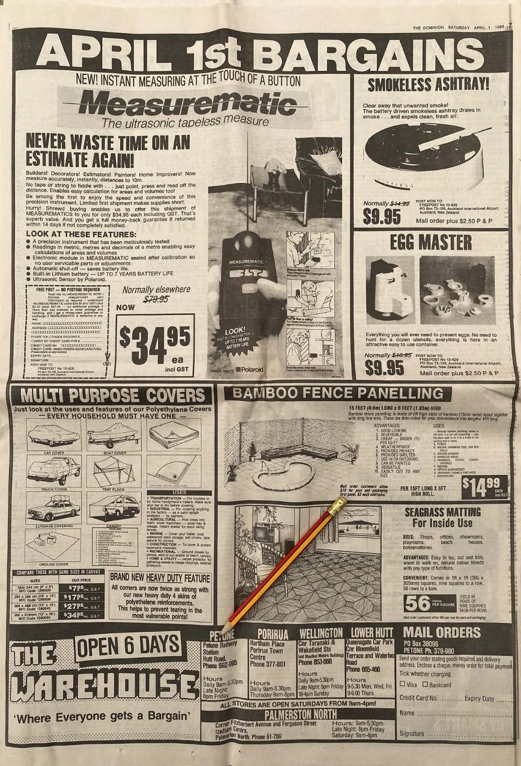 Own a unique piece of Kiwiana - an original full page advert for The Warehouse from a 1989 newspaper that would look fantastic framed.
