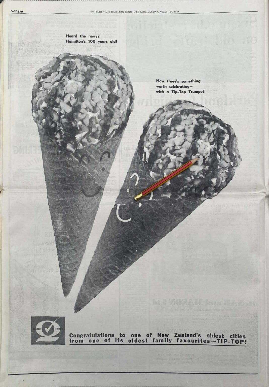 Own a unique piece of Kiwiana - an original full page vintage advert for Tip-Top Ice Cream from a 1964 newspaper that would look fantastic framed.