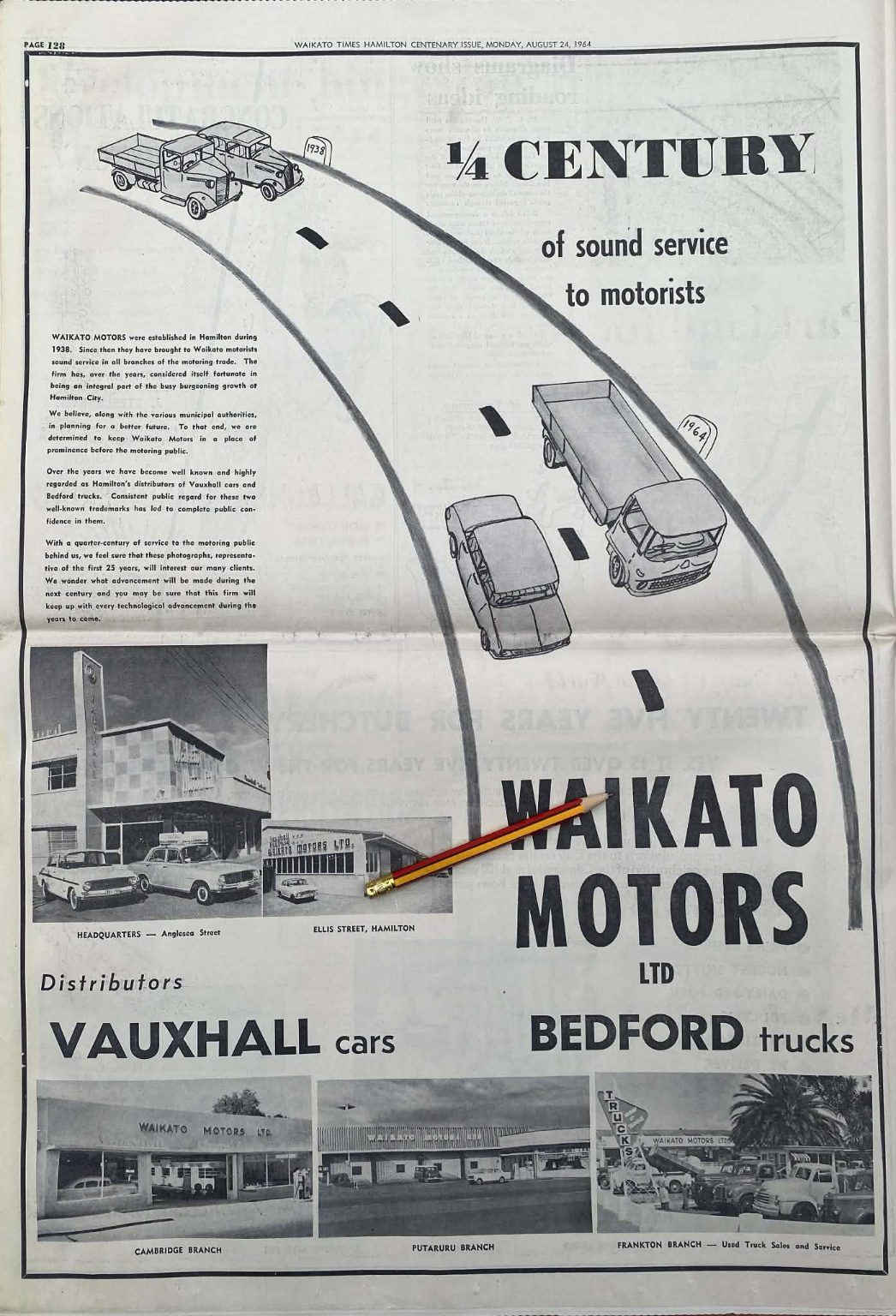 Waikato Motors were local distributors for Vauxhall cars and Bedford trucks.