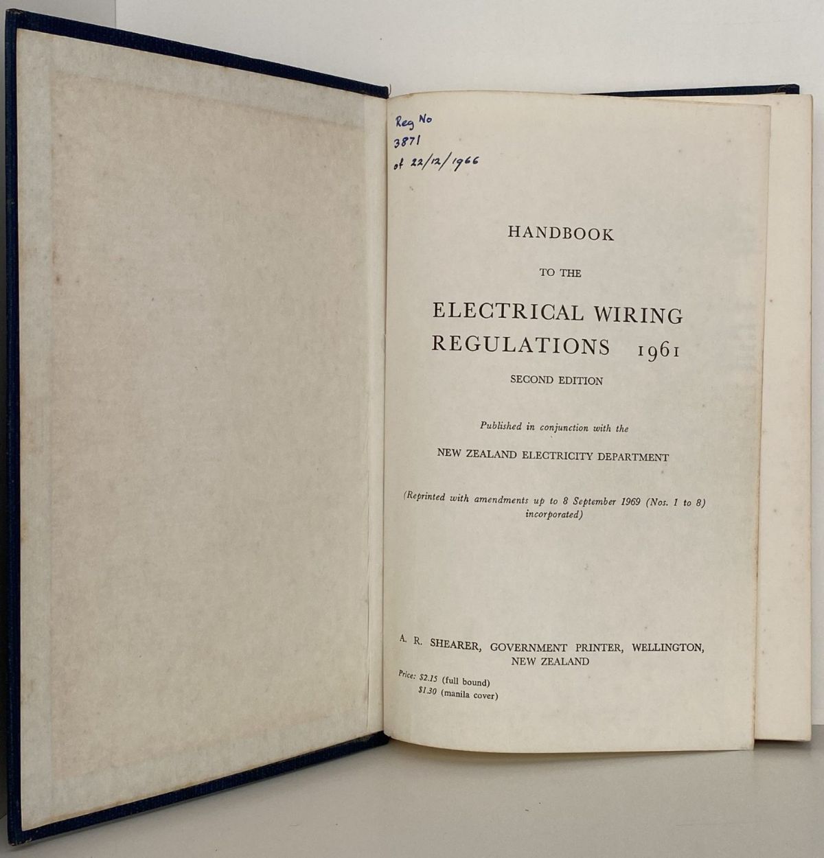 Vintage edition of the Electrical Writing Regulations 1961 for use by electricians in New Zealand.