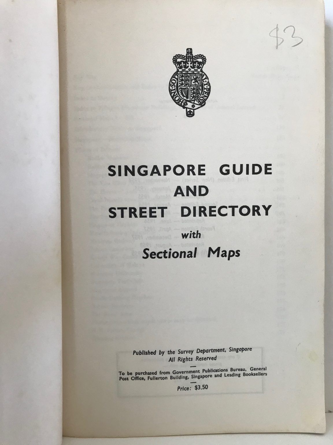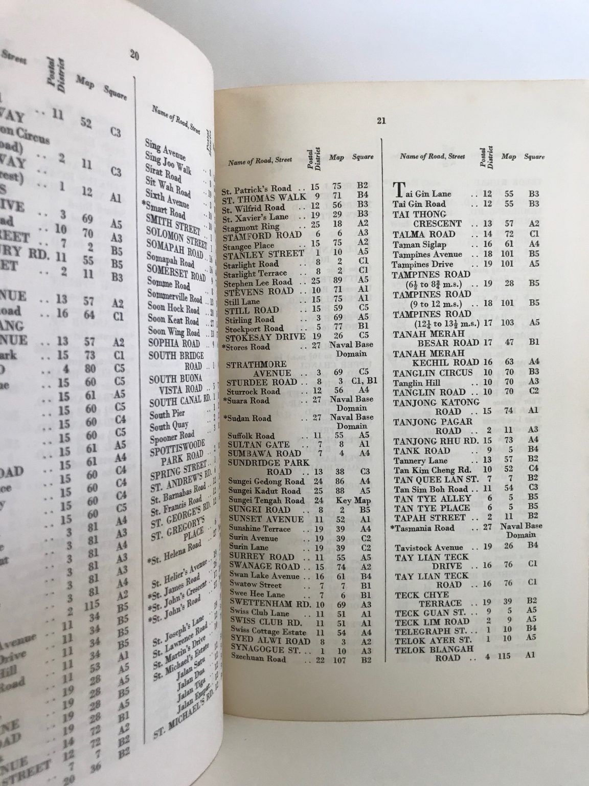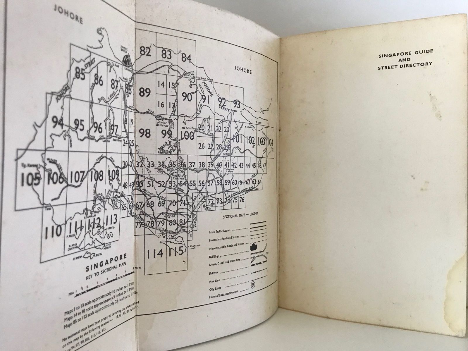 A vintage guide and street directory for Singapore from the 1950s.