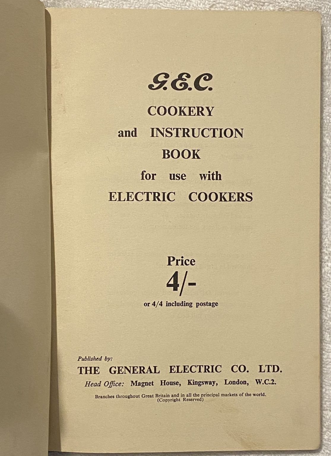 Intended to assist the housewife to obtain the best results from her new GEC Cooker - more than just a collection of recipes.
