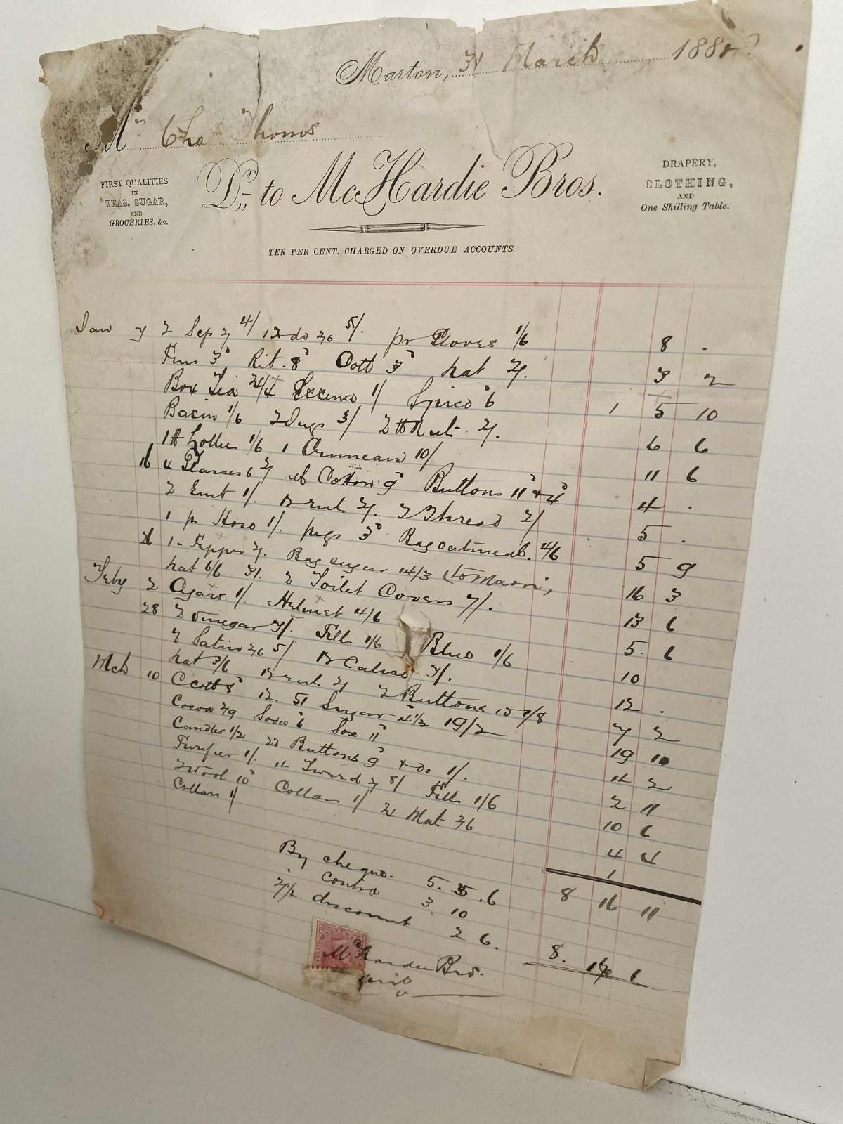 Title: ANTIQUE INVOICE: McHardie Bros, Marton - Groceries, Drapery and Clothing 1882