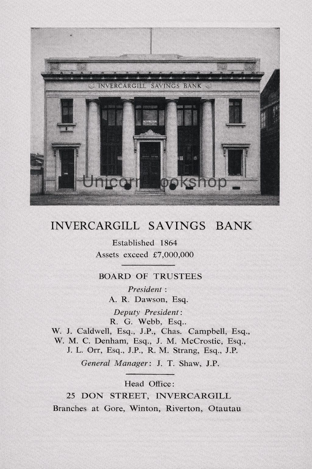 This is an identical modern reproduction of a small vintage advert for Invercargill Savings Bank from 70+ years ago that would look fantastic framed.