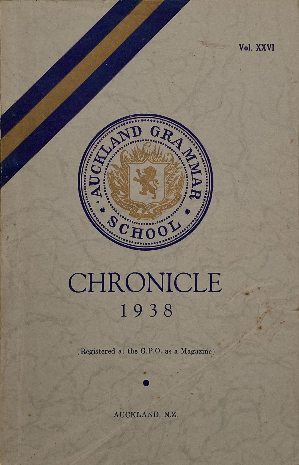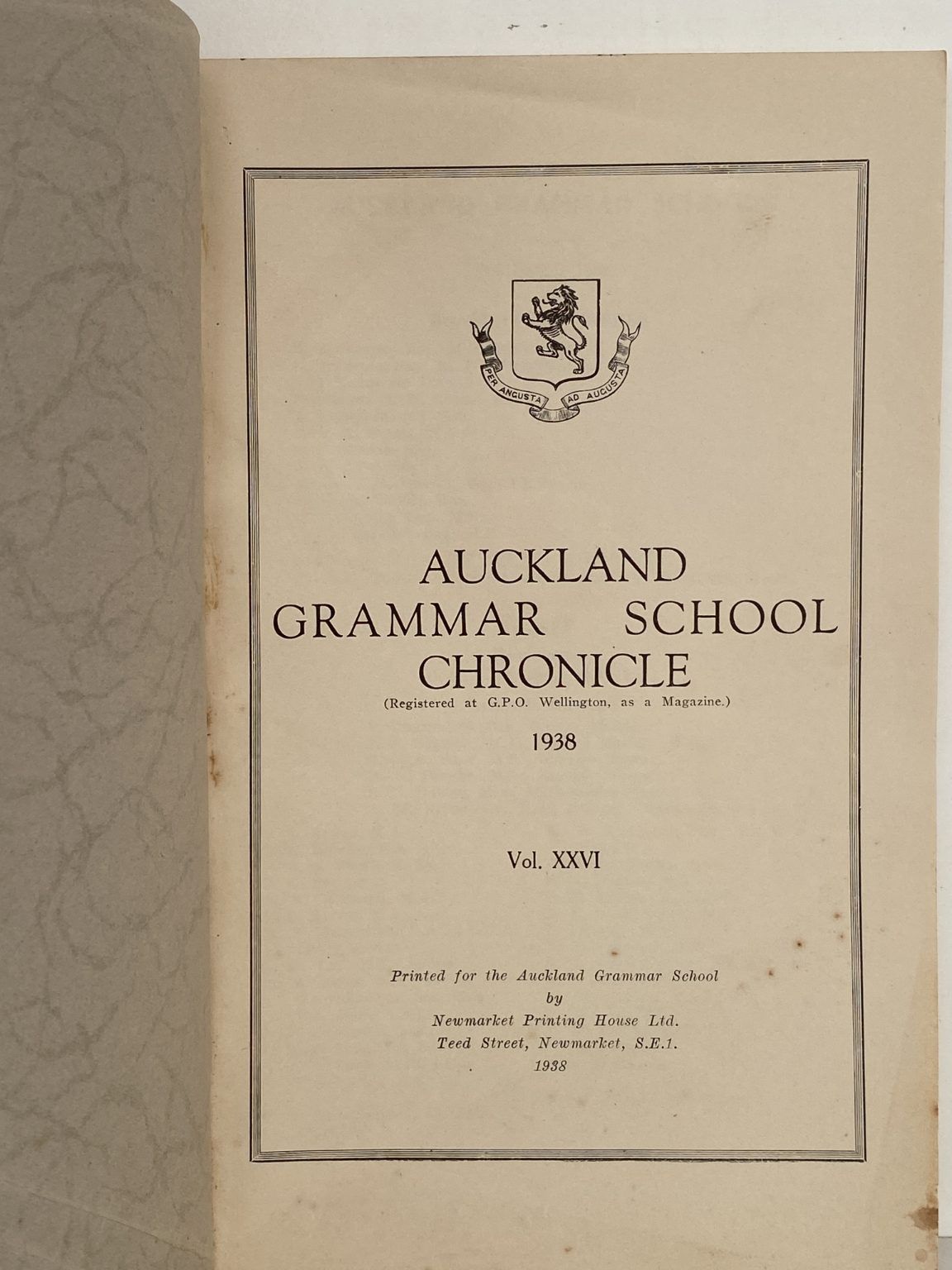 AUCKLAND GRAMMAR SCHOOL: Chronicle 1938, Volume XXVI