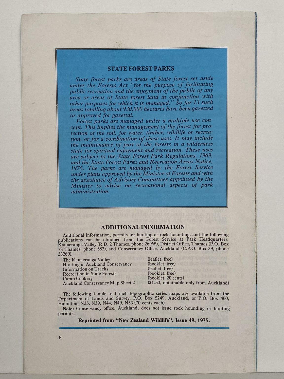 Vintage guide and map to the Coromandel State Forest park.