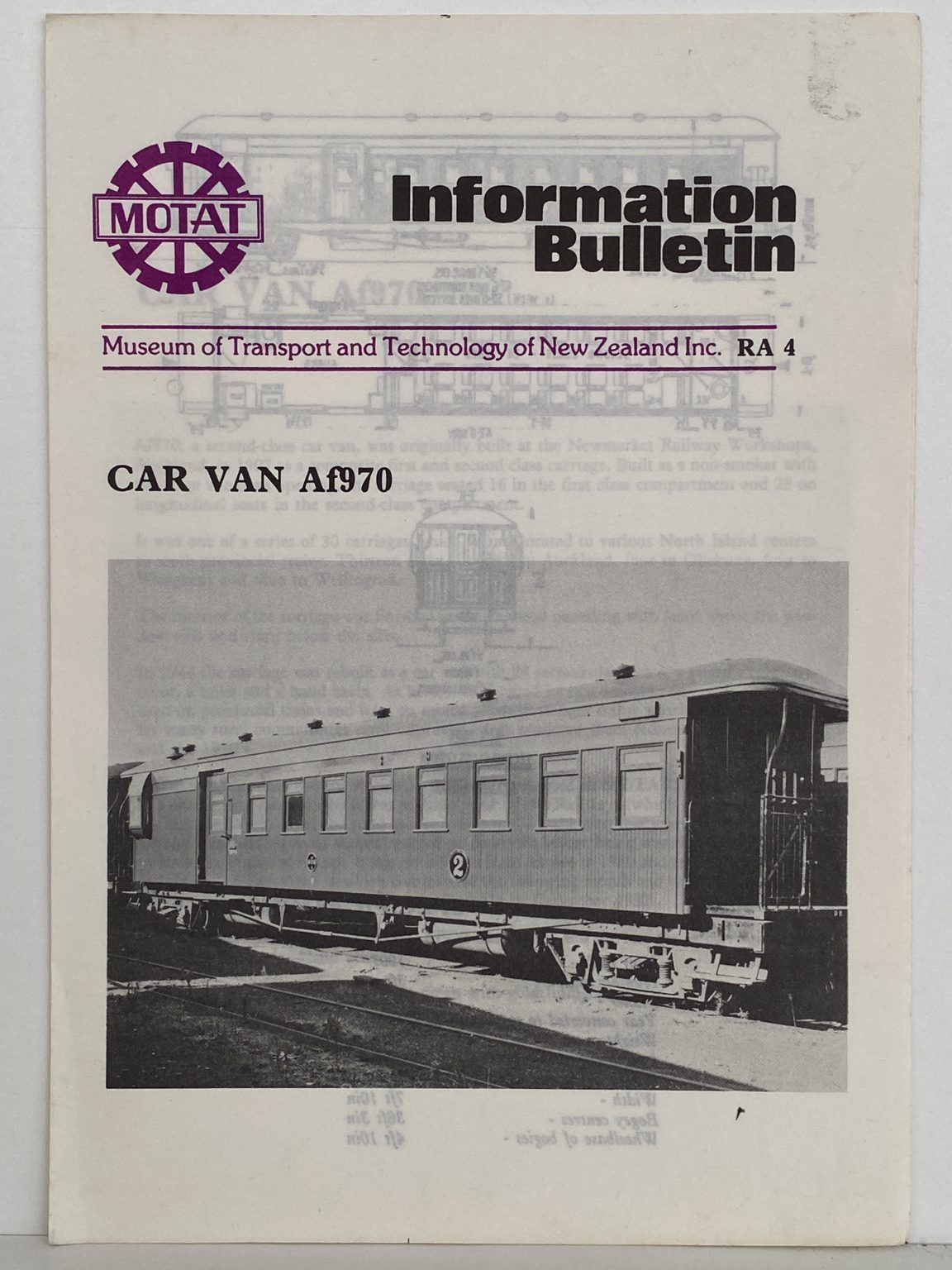CAR VAN AF970: Motat Information Bulletin RA4