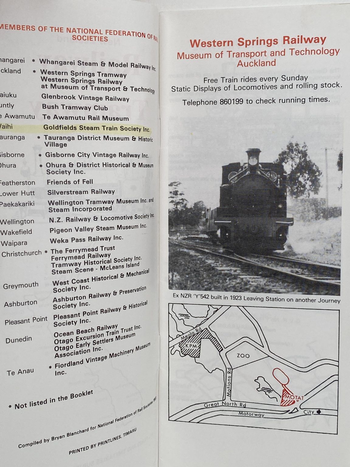 A retro information booklet on the various railway and tramway operating museums in New Zealand.