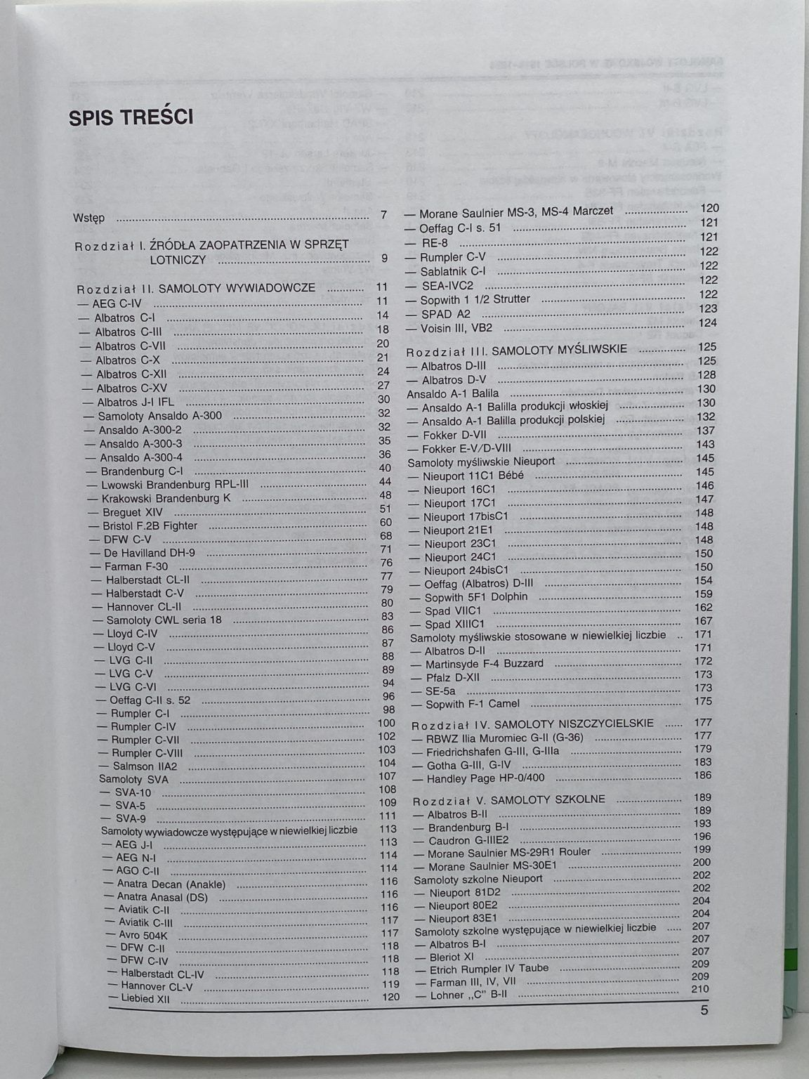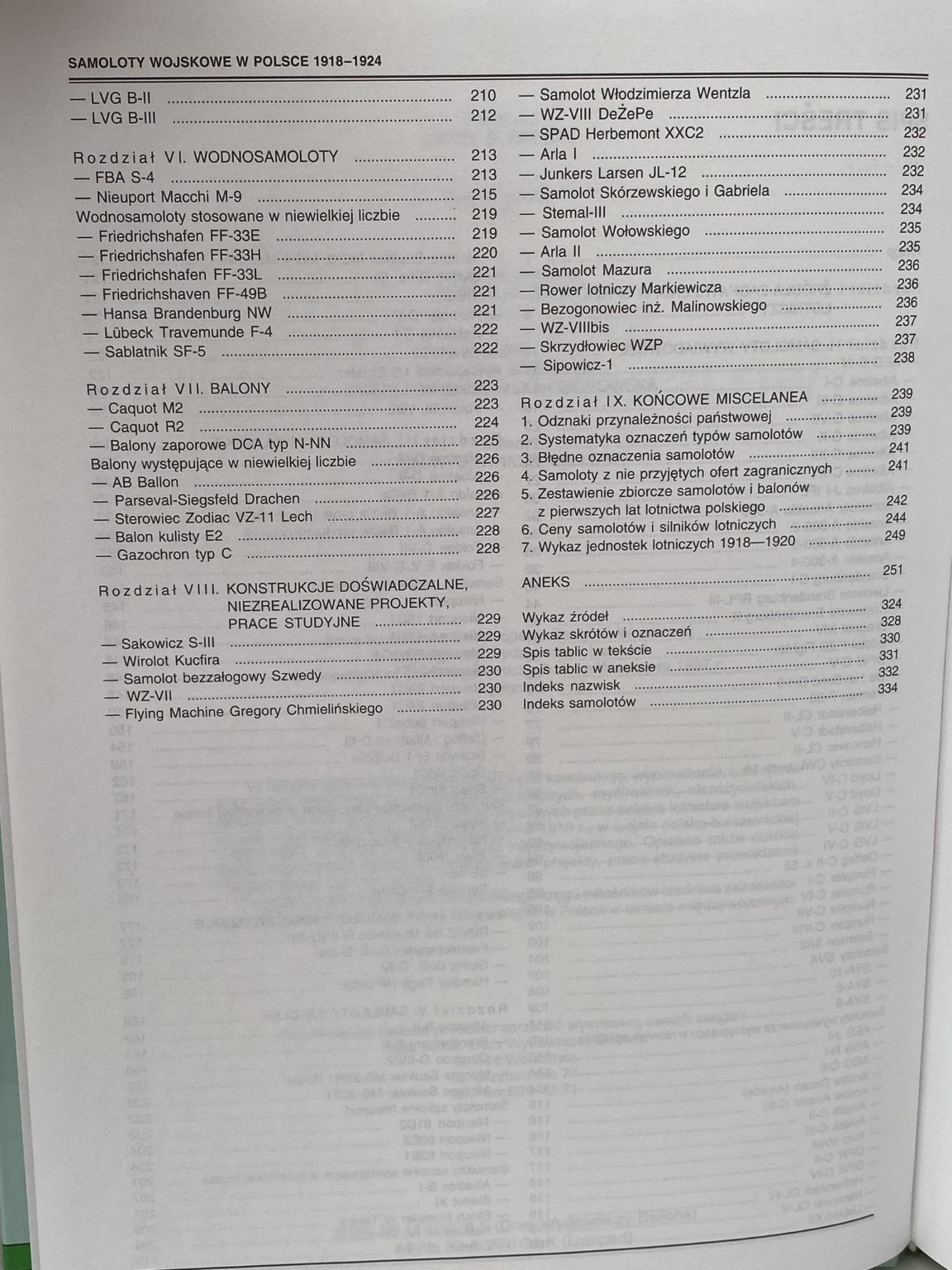 Presents the development history, design, equipment, armament, and technical data of reconnaissance, fighter, destroyer, trainer, seaplane, and balloon aircraft used by the Polish Air Force after Poland regained independence during the Polish-Soviet War of 1919-1920, and at the beginning of the interwar period.