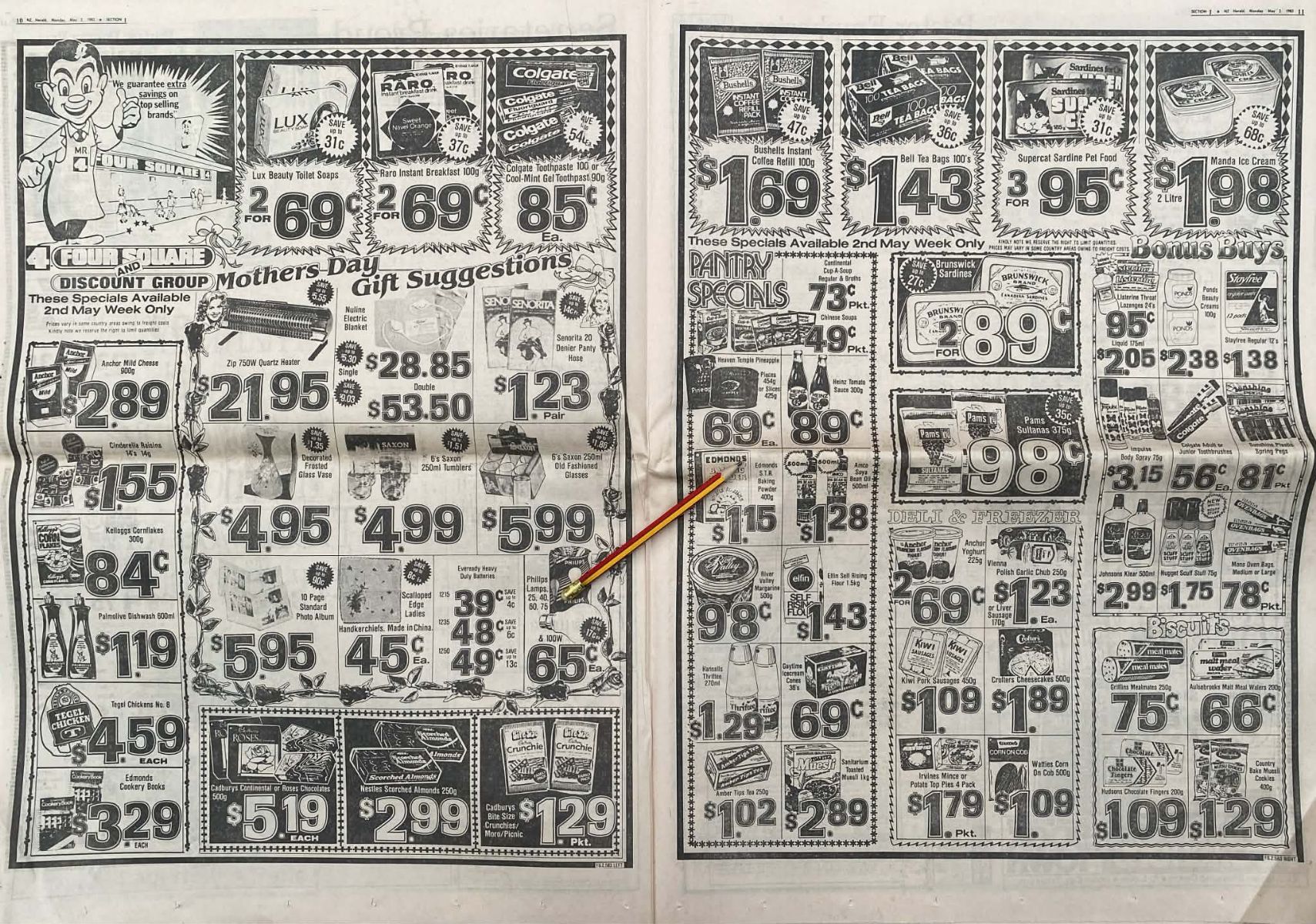 Own a unique piece of Kiwiana - an original double full page advert for Four Square Stores from a 1983 newspaper that would look fantastic framed.