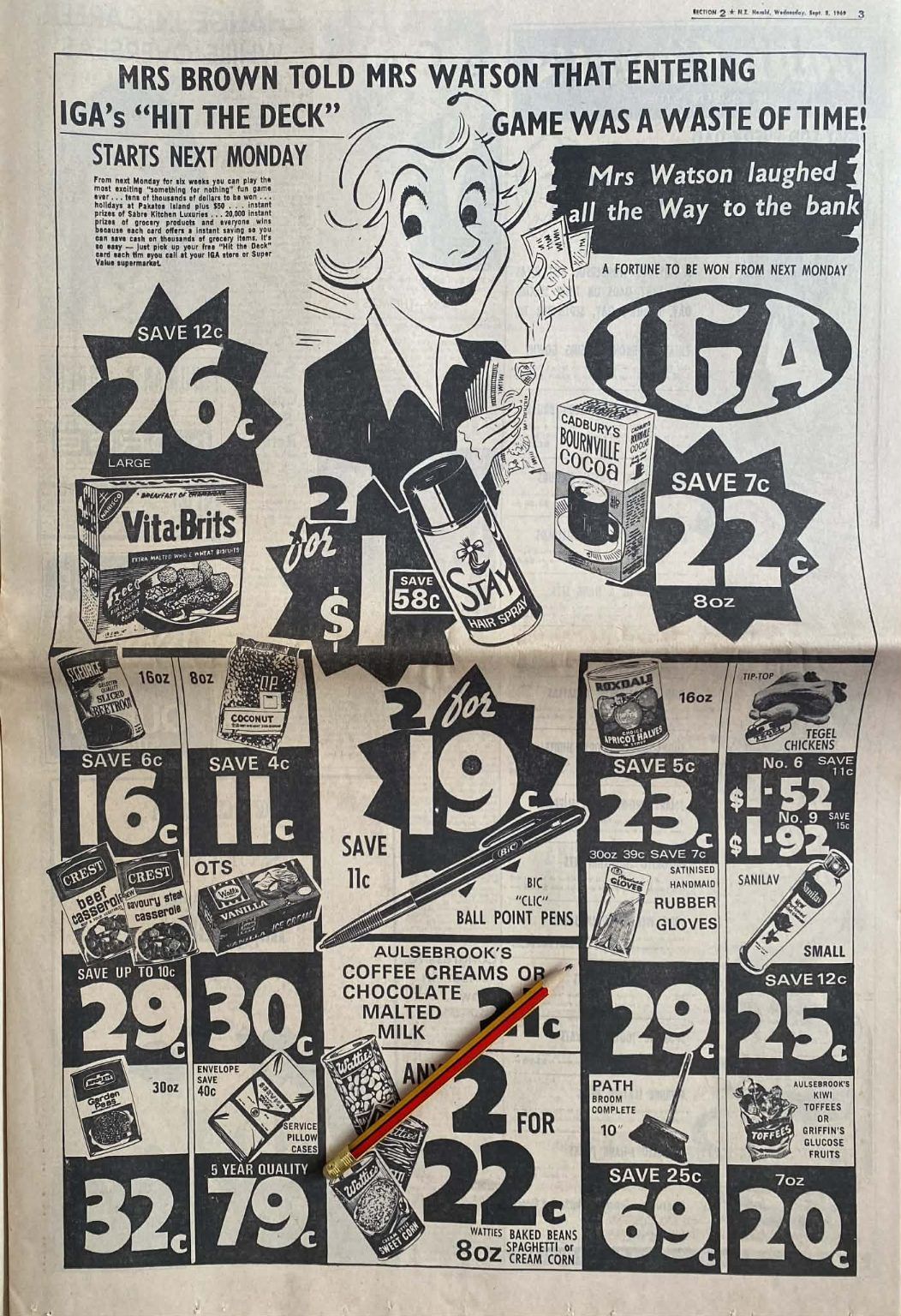 VINTAGE NEWSPAPER ADVERT: IGA Grocers, 3 September 1969