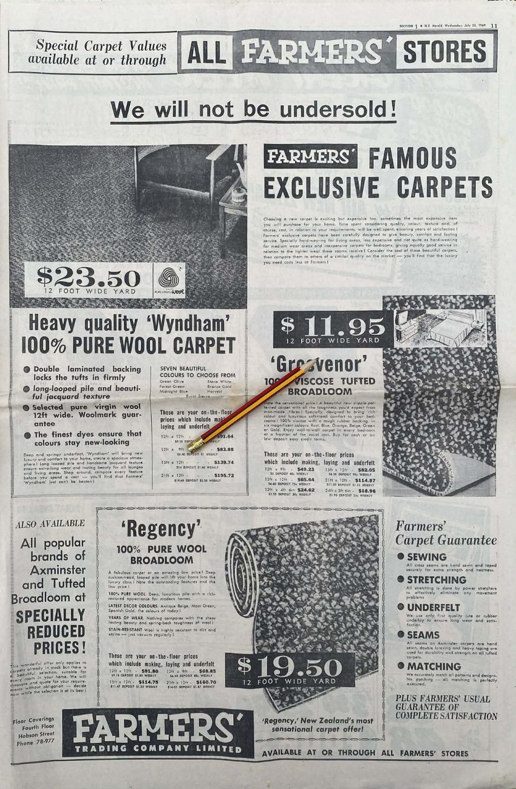 Own a unique piece of Kiwiana - an original full page vintage advert for Farmers' Trading Company from a 1969 newspaper that would look fantastic framed.