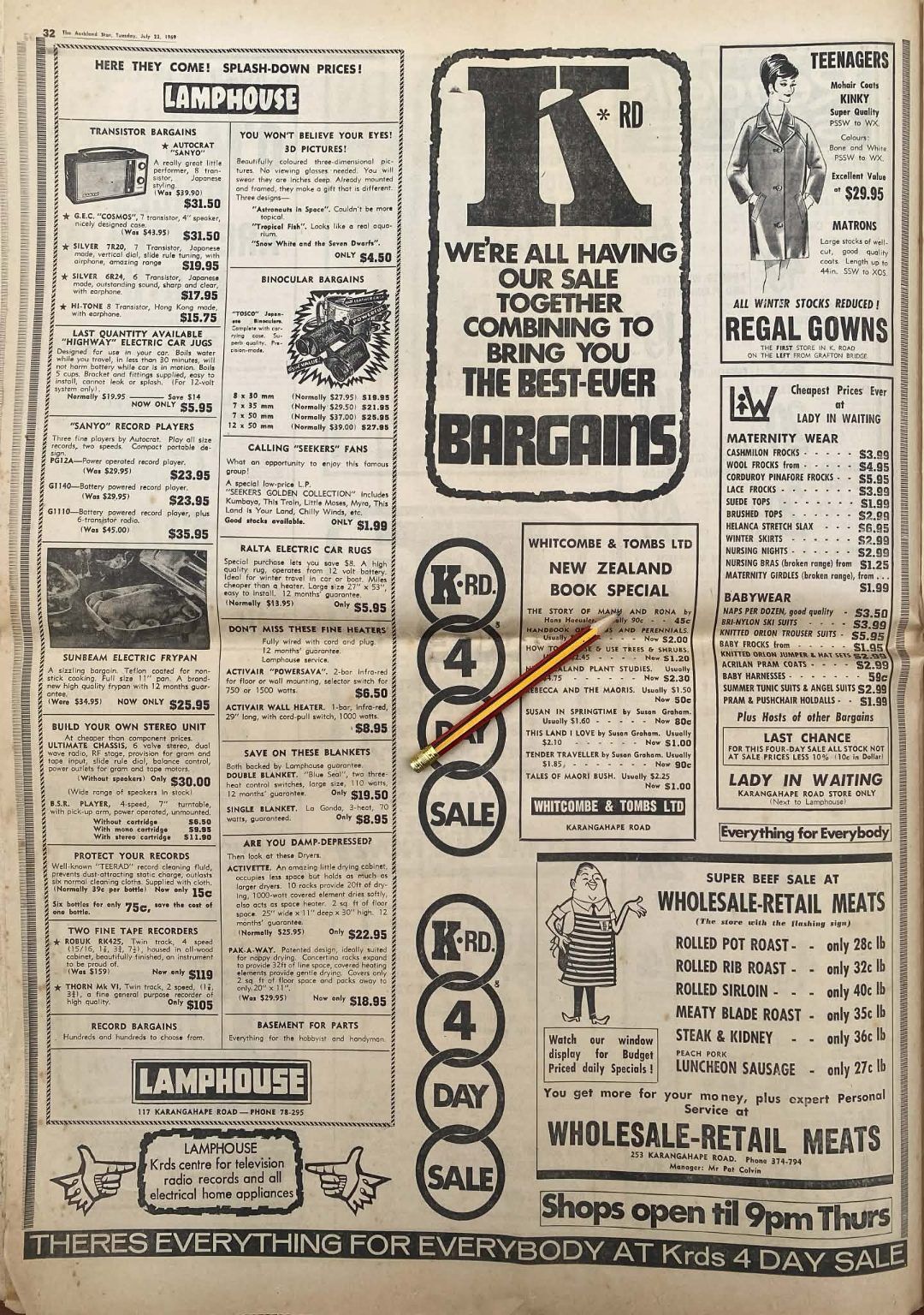 VINTAGE NEWSPAPER ADVERT: K-Road Bargains 1969